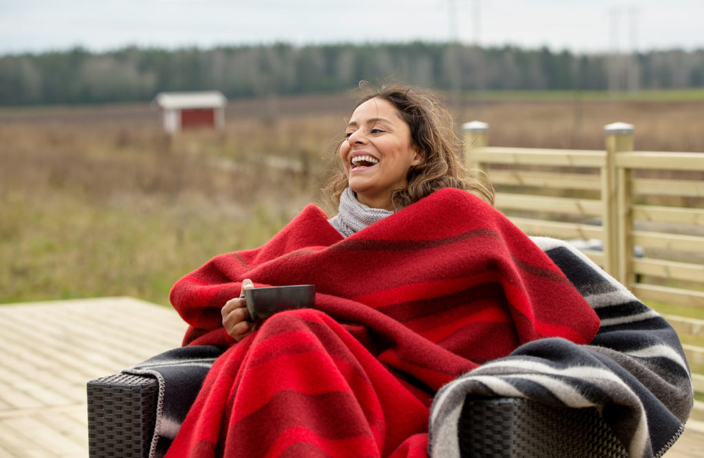 Tillverkad i 100% ull är den mjuk, varm och skön med en äkta lyster som bara naturens material kan ge. När du sveper filten runt axlarna möts jorden och himlen på framsidan. Och som en symbol för skyddande och bevarande egenskaper har du den röda husväggen bakom ryggen. Filten är ett konstverk där formgivaren fritt tolkat Falu Rödfärg och tagit fram en design som rymmer hela det svenska landskapet. Den är en kombination av tradition och nyskapande och håller, liksom Falu Rödfärg, i generationer. Designen innefattar 21 kulörer – vilket speglar antalet naturliga mineraler i Falu Rödfärg.