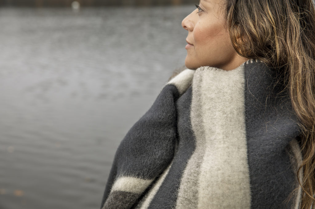 Filten som fått sitt namn Hemlängtan är skapad med inspiration från rödfärgens djupa rötter i den svenska traditionen. En stor, härlig, röd ”vägg” i högkvalitativ ull som lånat sin randning från